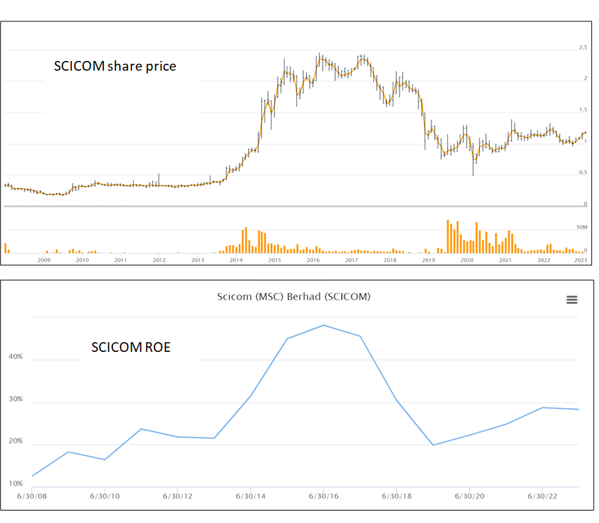 The ROE for the past few years were half of those at its peak in its mid-2000s. If you track the share price over the past decade with that of the ROE, you will see a similar pattern. Refer to https://i.postimg.cc/90q1FrsR/SCICOM.png. So unless that ROE is going to trend up, I am not sure why you would think that the share price will go up.
